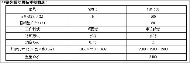 FM系列振動(dòng)磨技術(shù)參數(shù)表:?